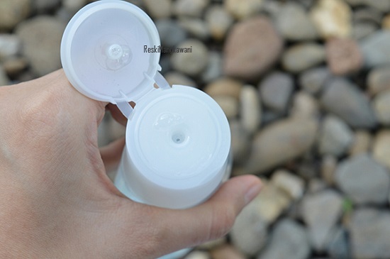 Tutup botol cleansing water ini berbentuk flip sehingga